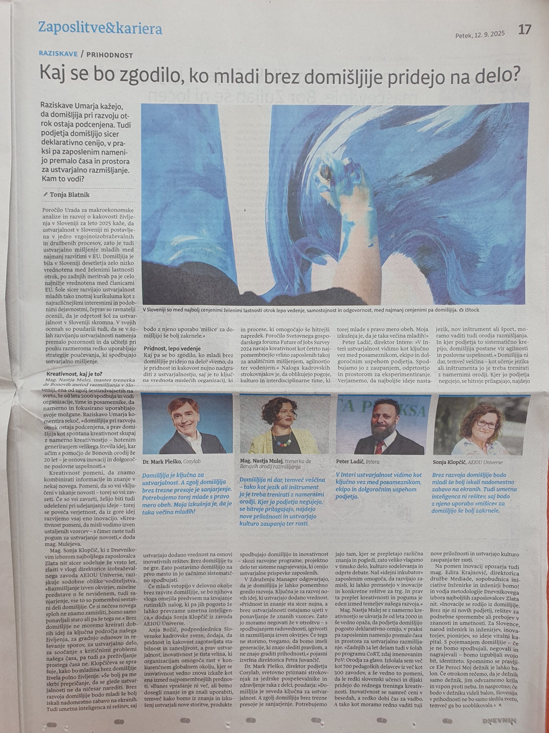Kaj se bo zgodilo, ko mladi brez domišljije pridejo na delo?, (jpeg članek: TUKAJ) Dnevnik, september 2025